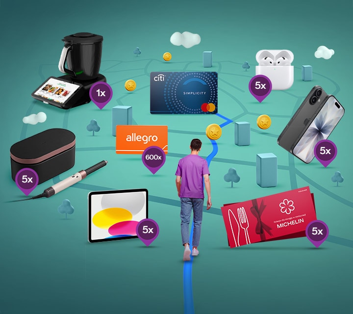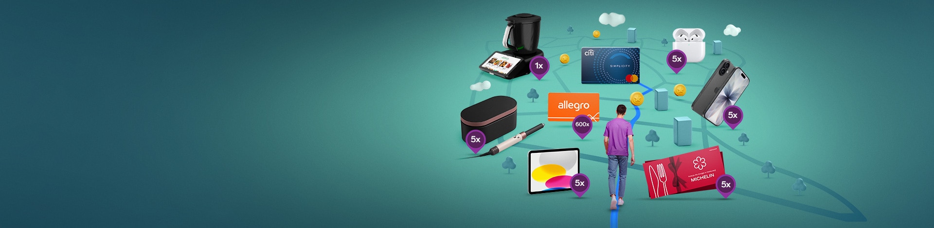 Płacąc kartą Citibank Mastercard® zbierasz punkty, które możesz wymienić na vouchery i nagrody z katalogu.