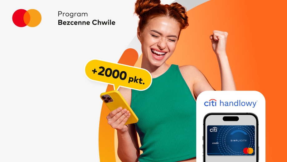 Spend at least PLN 100 with your Citibank Mastercard with program partners and earn 2,000 points that you can redeem for rewards. Offer for Citibank Mastercard cardholders, valid until May 3, 2026.