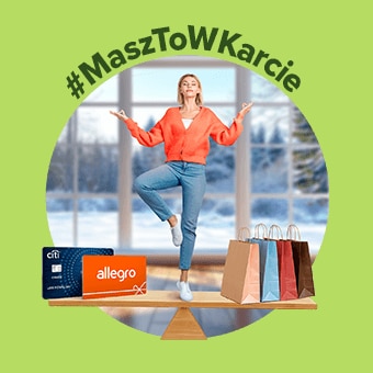 Oferta dla klientów Citi Handlowy, którzy w ciągu ostatnich 12 miesięcy nie skorzystali z Rat w Karcie ani z Salda na Raty. Ważna do 30.01.2026 i może powtarzać się w przyszłości. Regulamin Oferty „Poznaj Raty w Karcie Kredytowej i odbierz voucher do Allegro. Edycja 3” dostępny w zakładce Dokumenty.