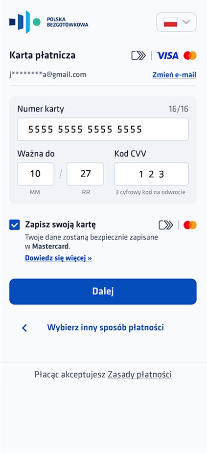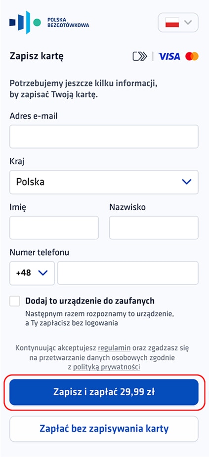 2. Podaj wymagane dane i zaznacz opcję „Zapisz swoją kartę”.